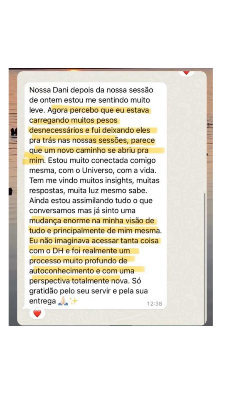 Especialista em Desenho Humano, Dani integra o mapa energético de cada cliente ao processo de diagnóstico emocional, tornando cada atendimento profundamente personalizado e preciso.